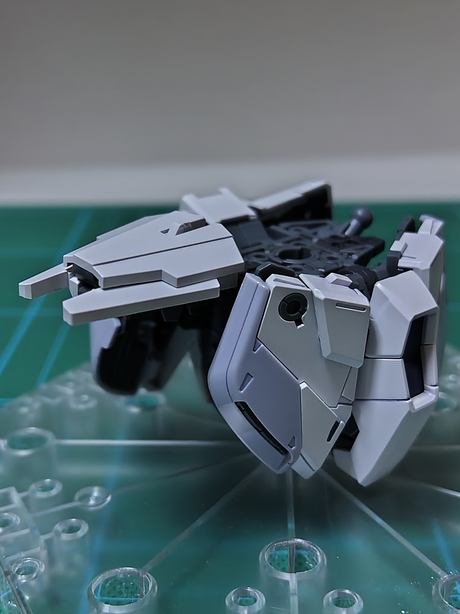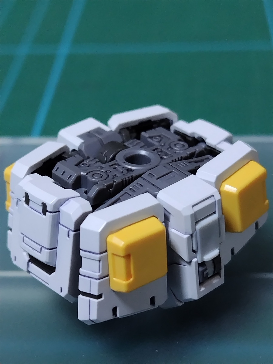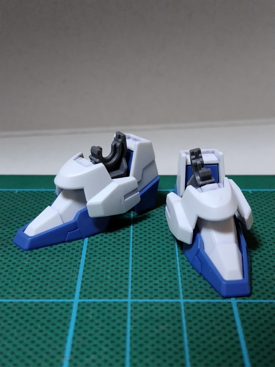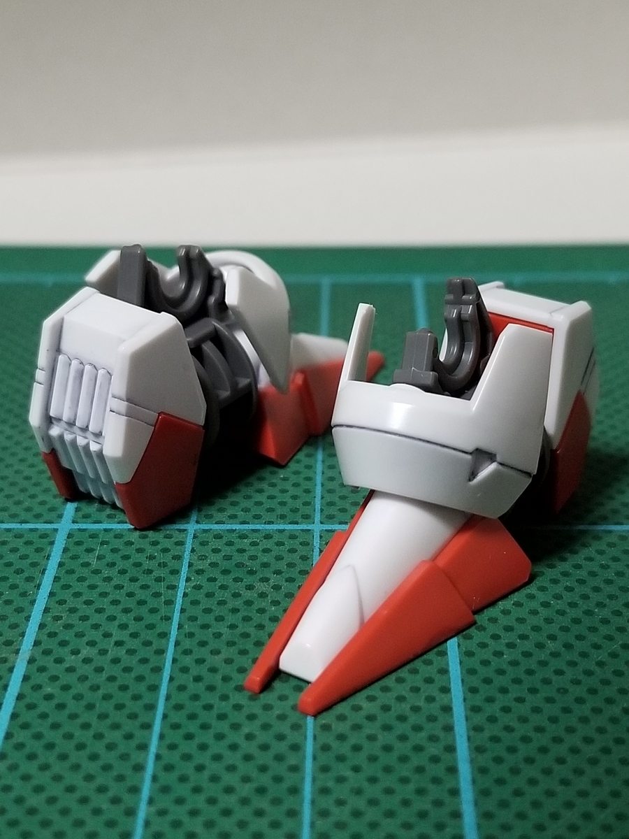 脚部スラスターを収納。足首を折り畳んで変形完了です。