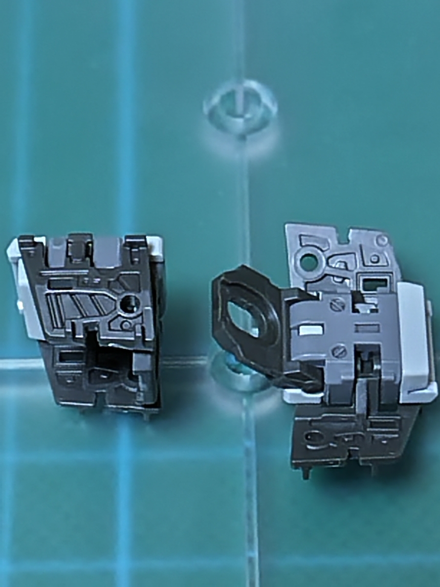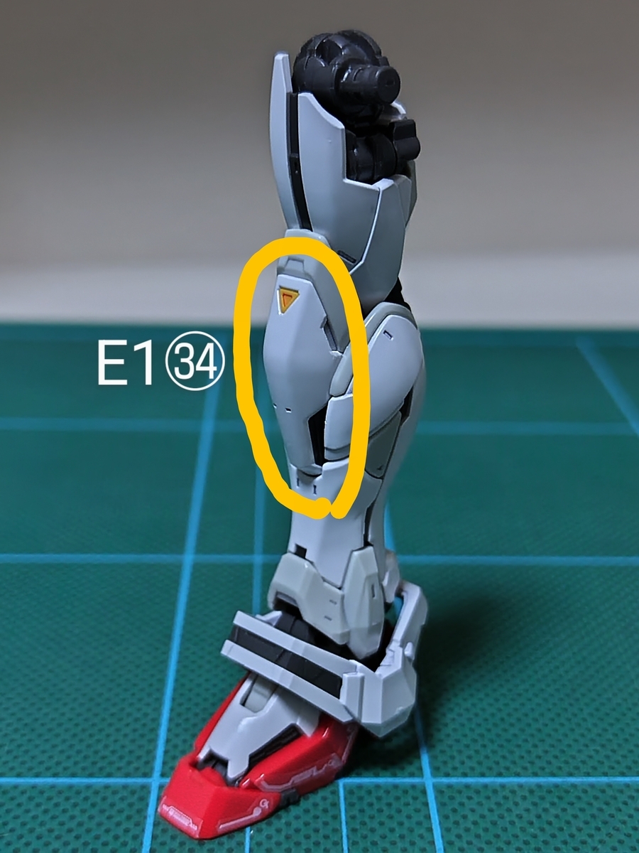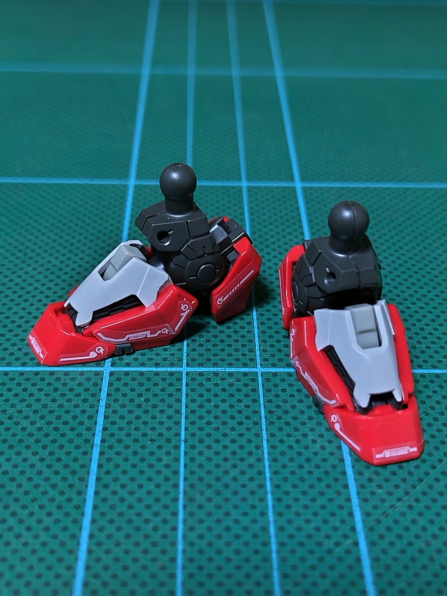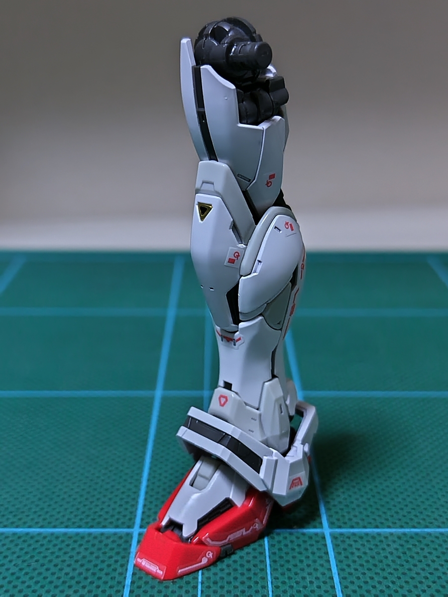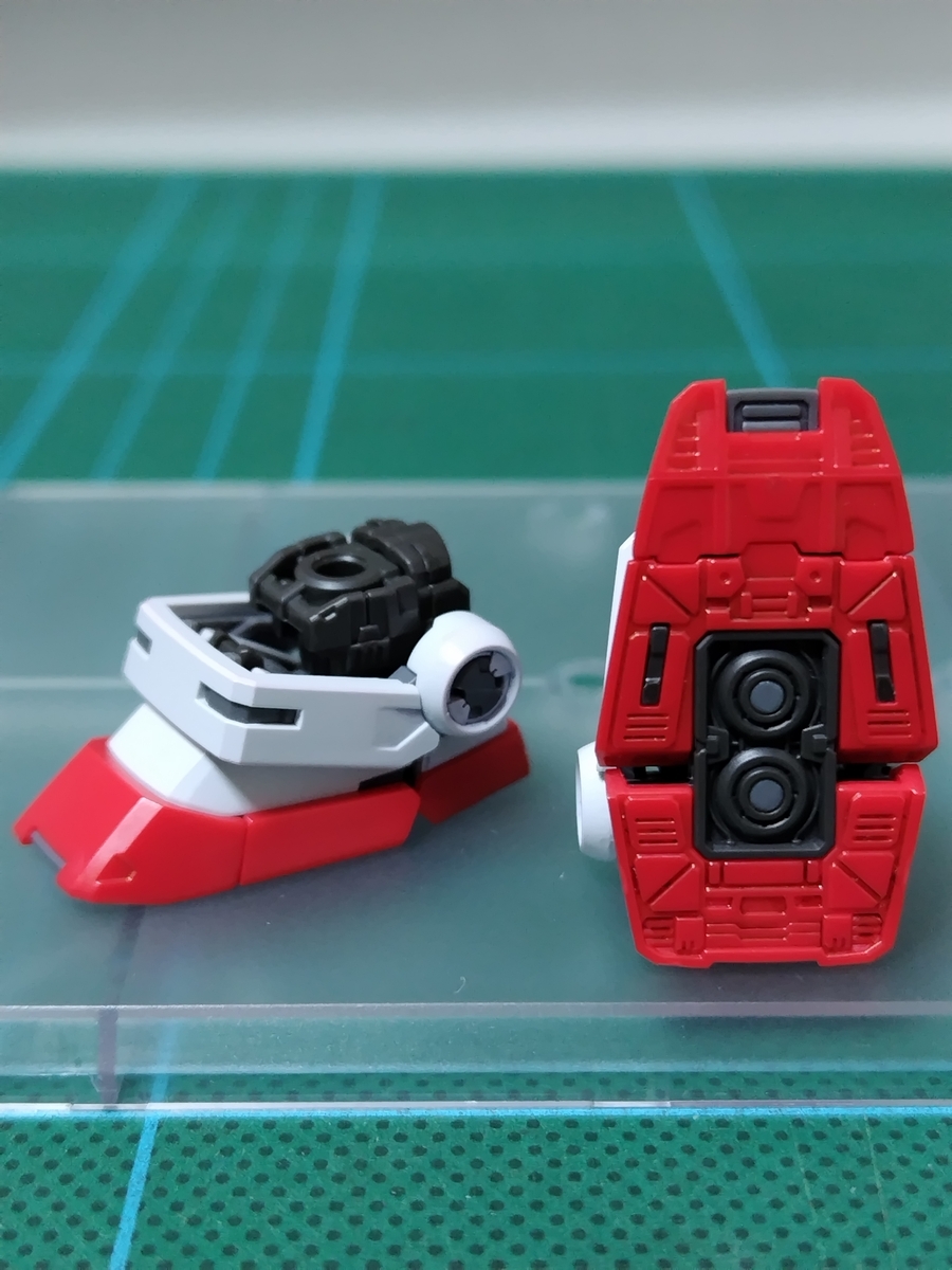 足首組立途中です。ホワイトのパーツはダボのはめ込みがキツめなので、しっかり押し込まないとレッドのパーツとの間に隙間ができてしまいます。