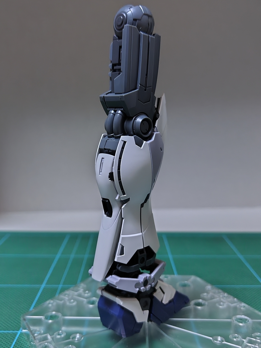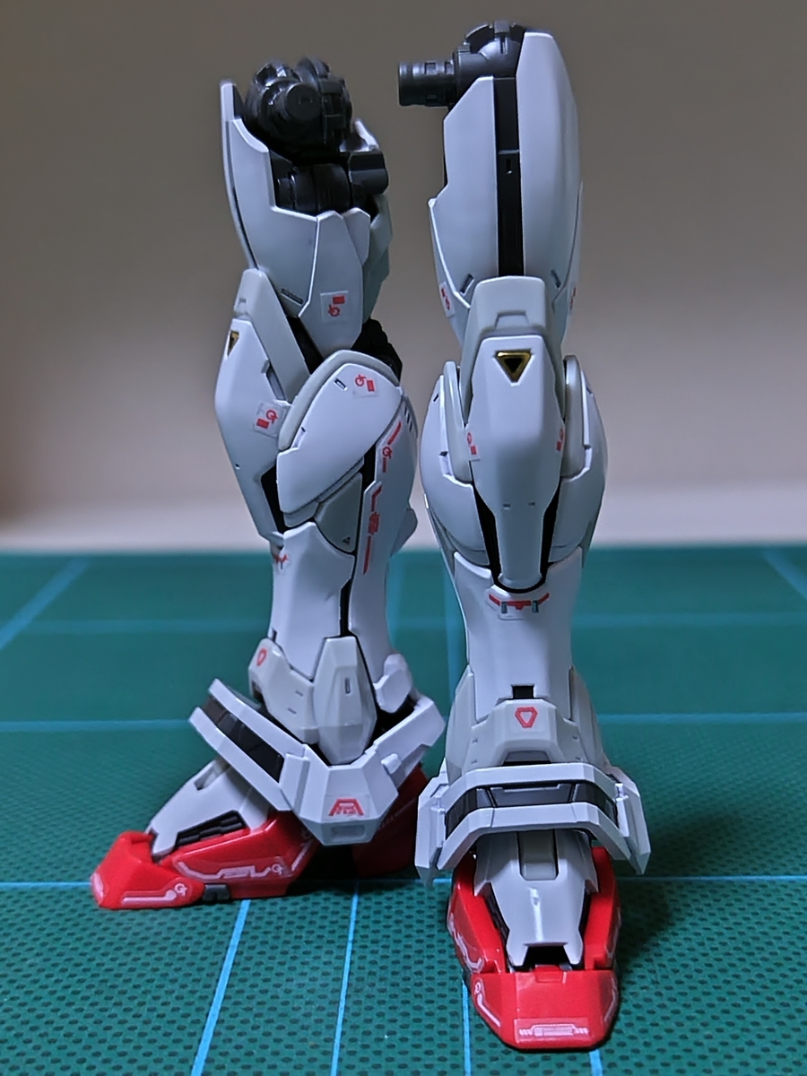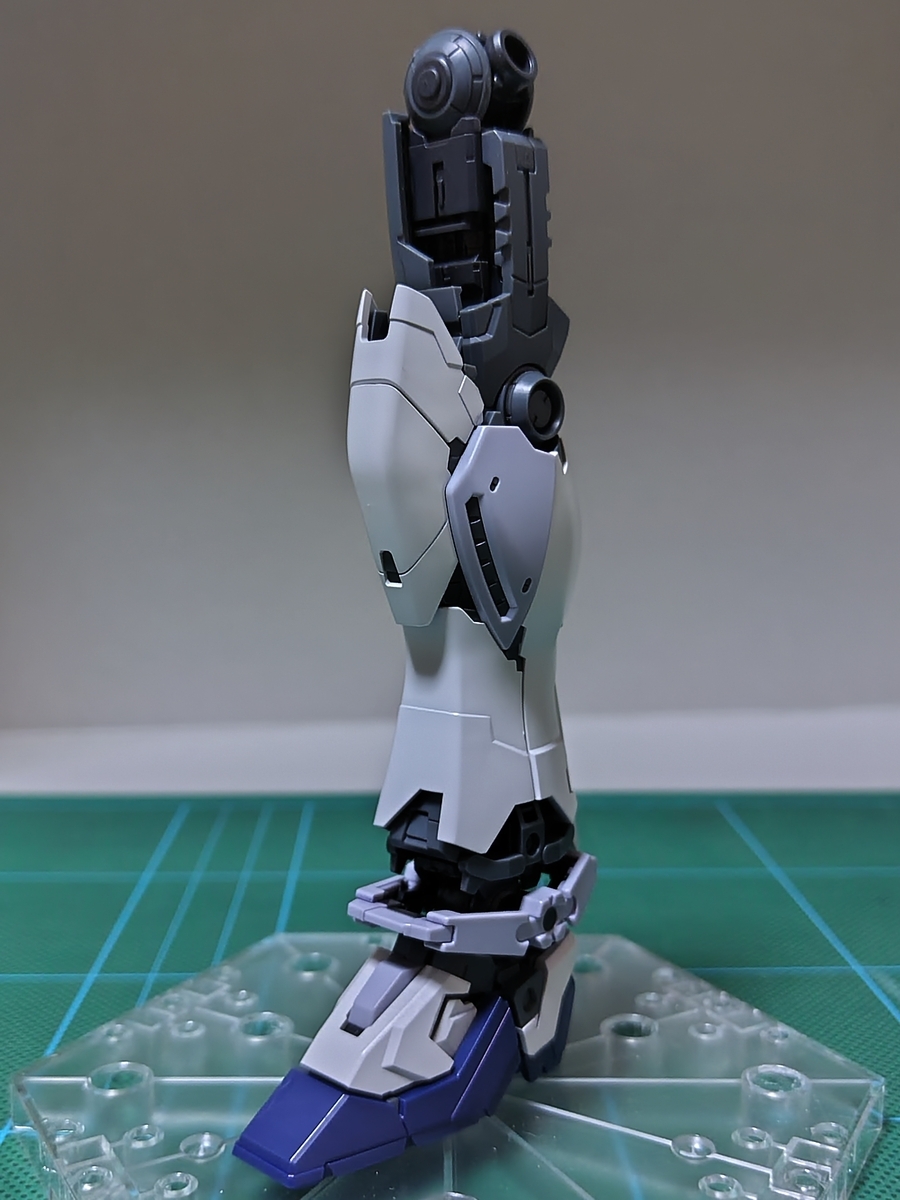 右脚組立完了です。ヒザ下側面の装甲は色分けのために三層構造になっています。