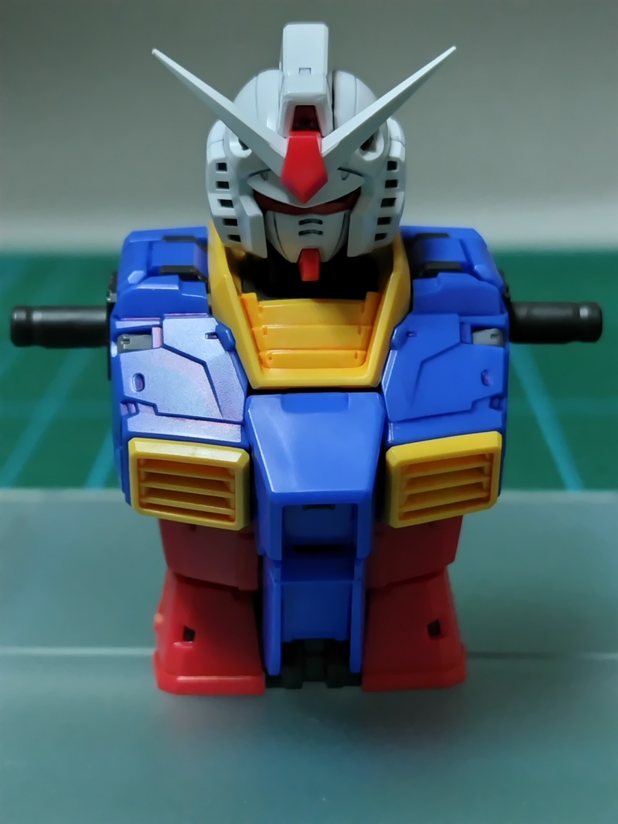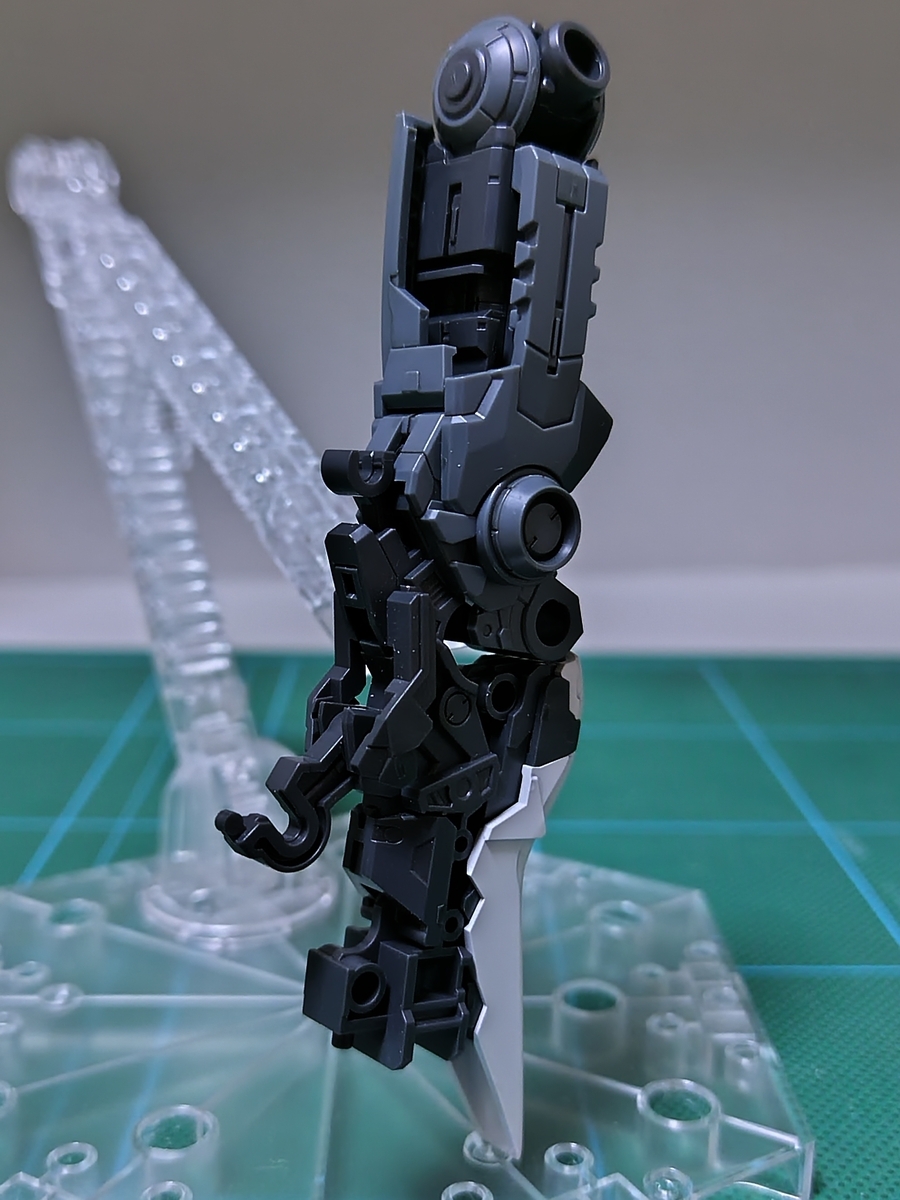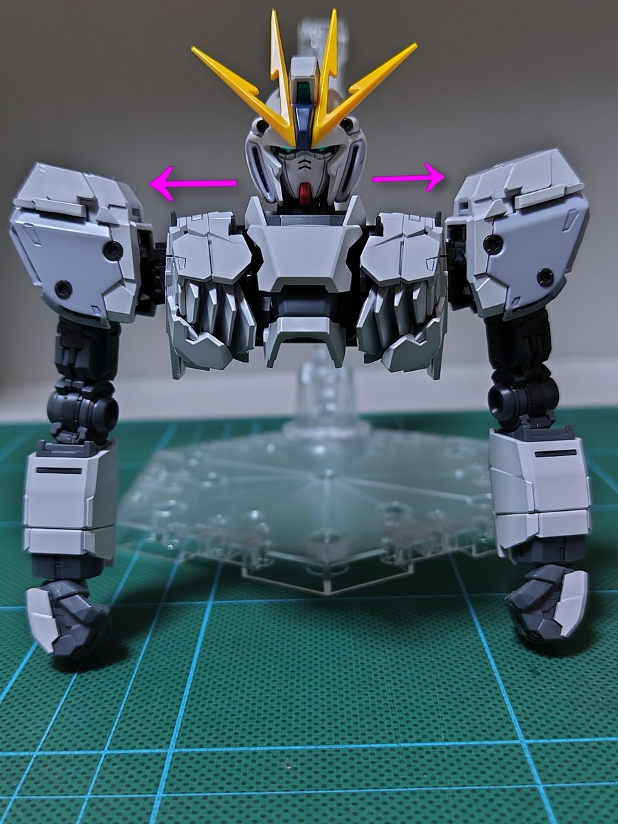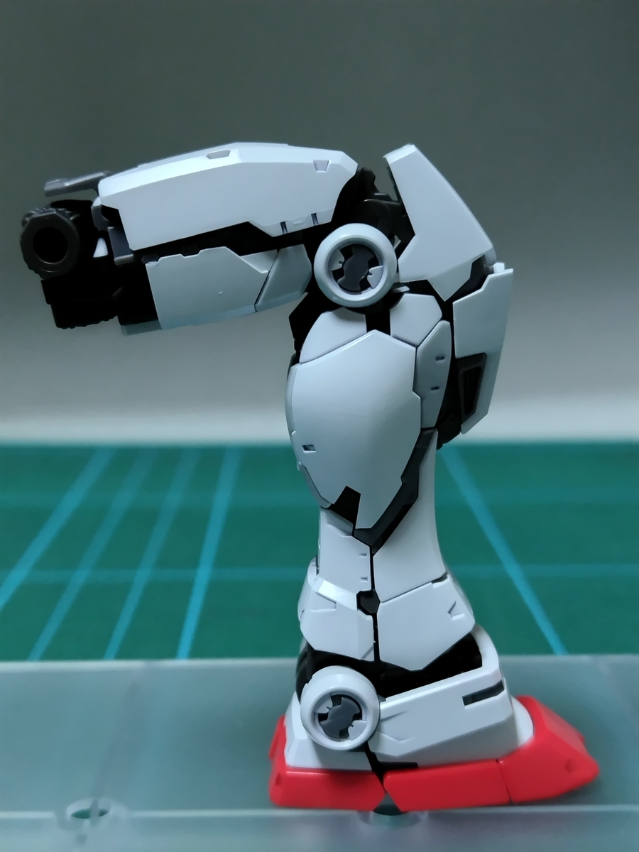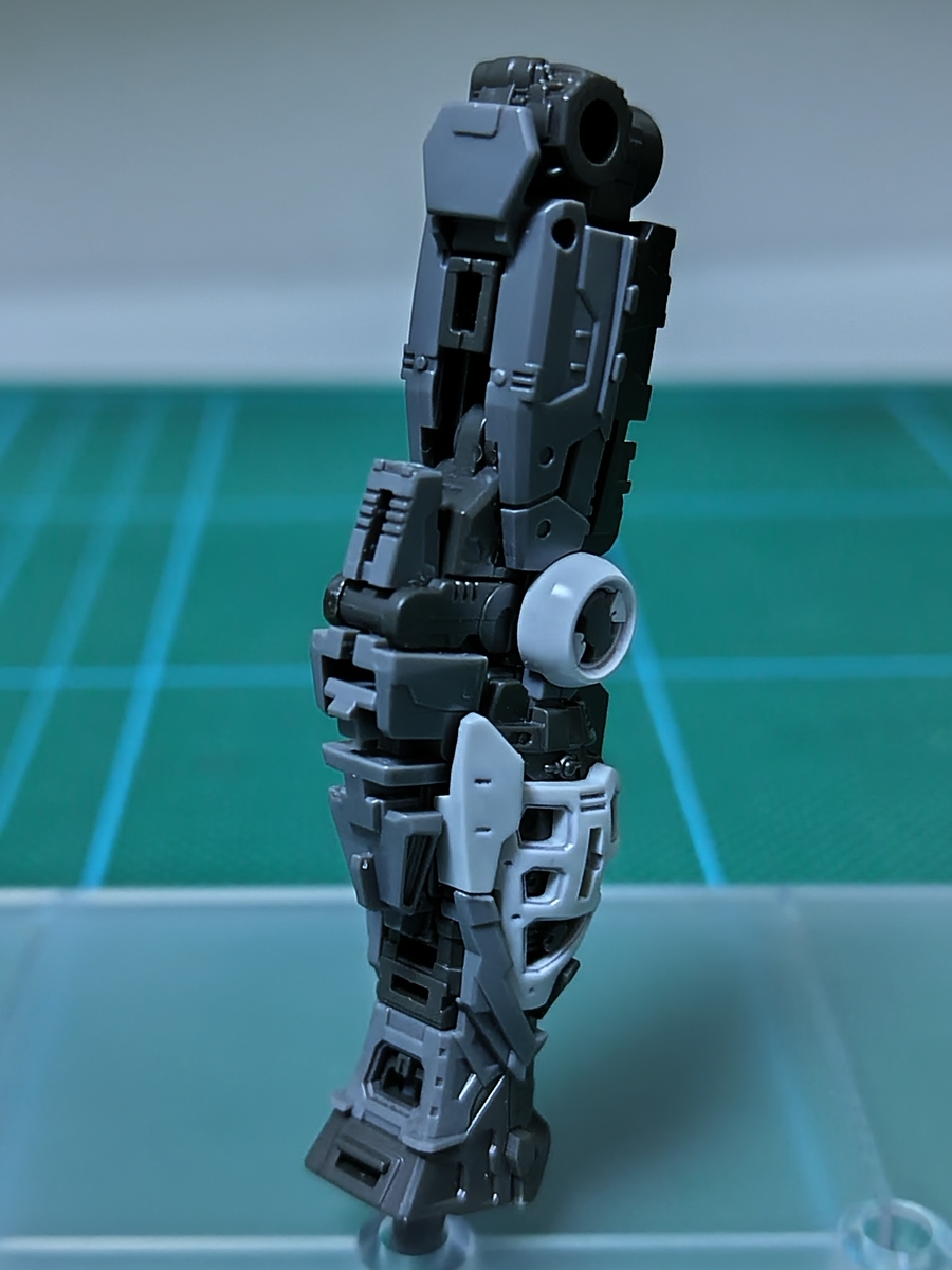 前腕を縮める際、デカールのはがれを気にするあまり思い切って縮められず、ロック位置を合わせるのに時間を要してしまいました。