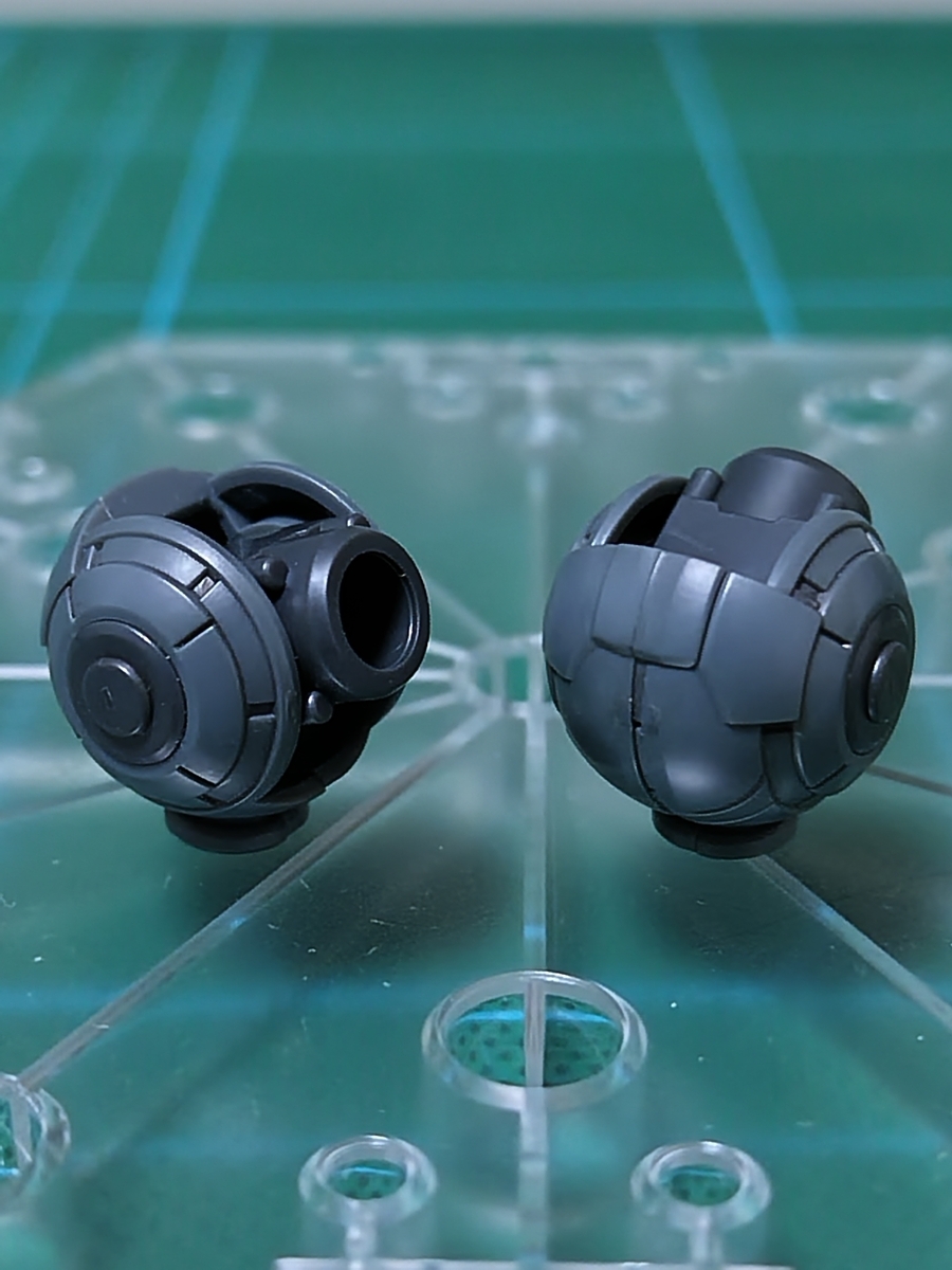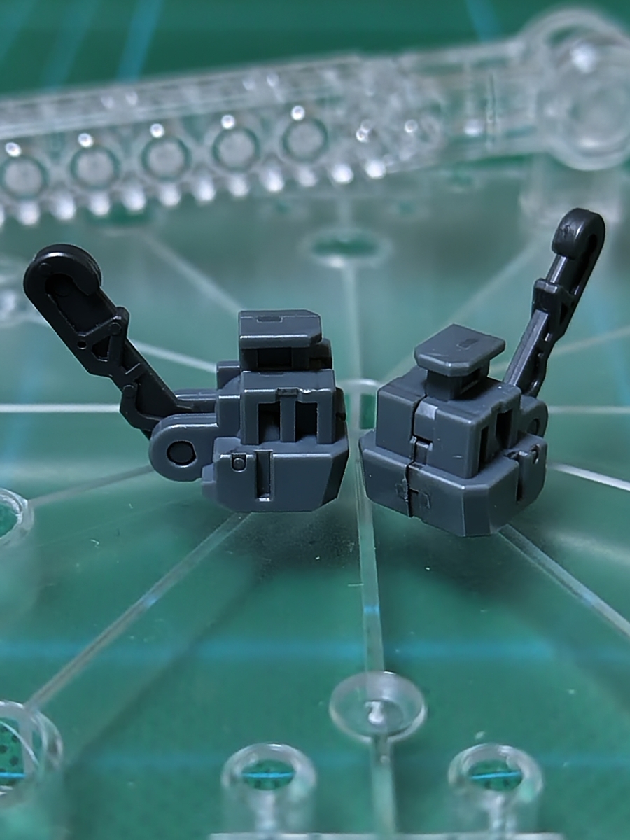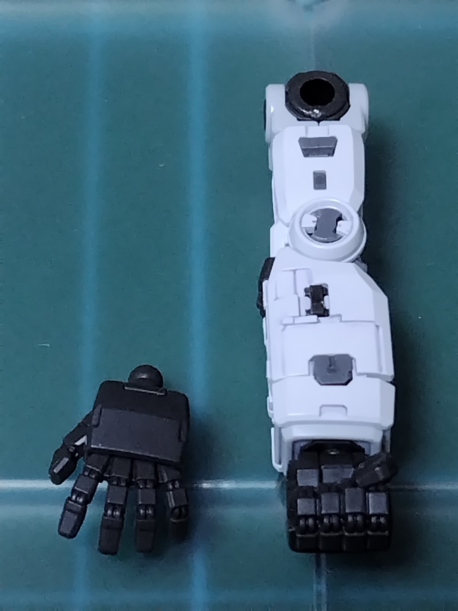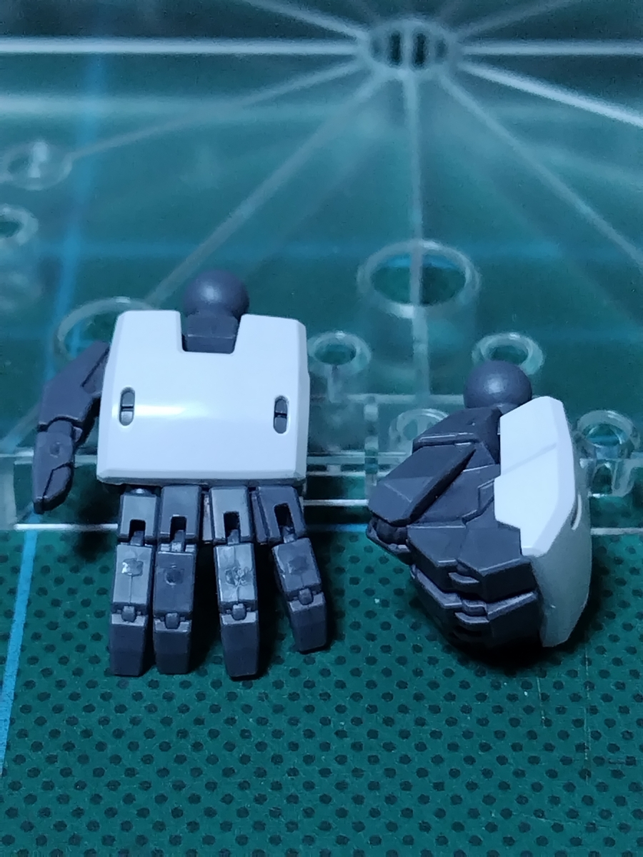 手首は、握り手と平手が左右それぞれ付属します。親指の付け根と掌もパーツ分割で設定どおり完璧に色分けされています。