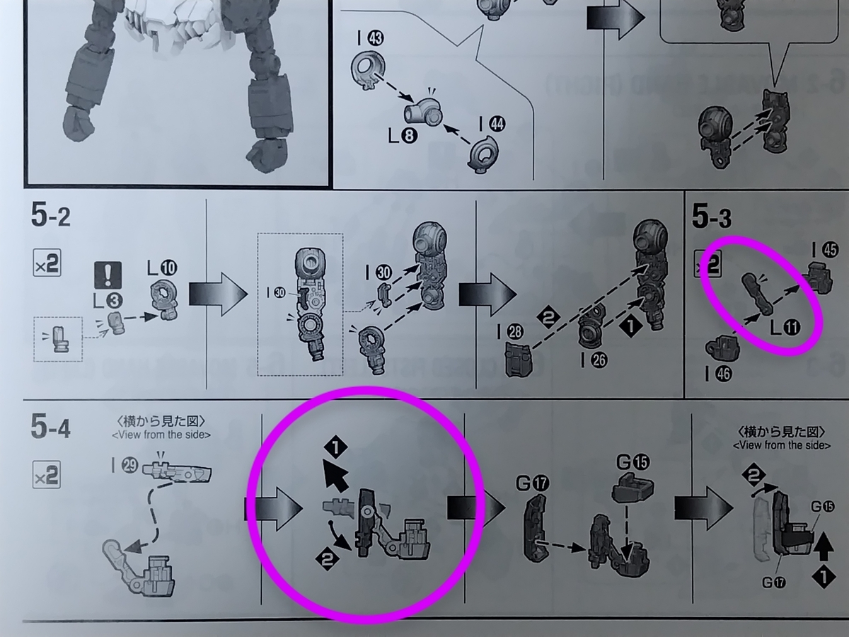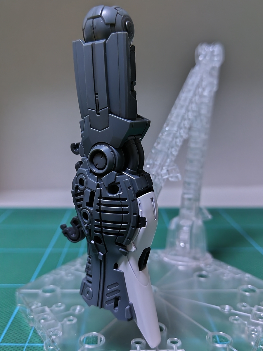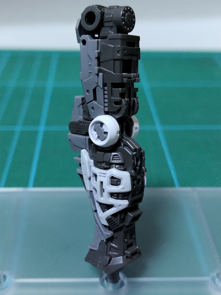 腕✕2の組立途中です。可変機構のおかげで、通常とは異なる形状をしたパーツばかりです。組み付ける際、パーツの向きに十分注意する必要があります。