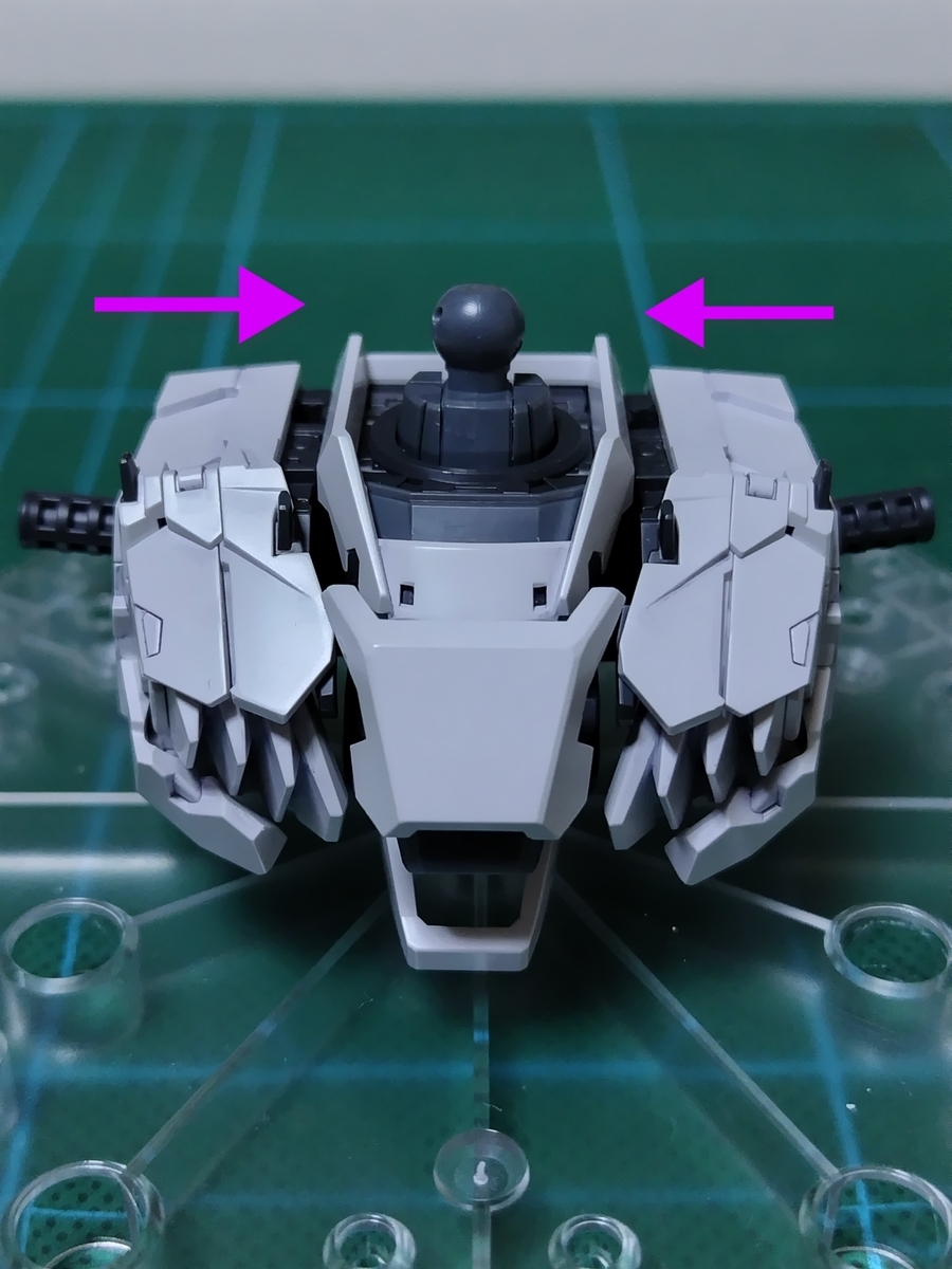 両腕を接続する時は、肩の前後装甲を外してから、軸に押し込みました。