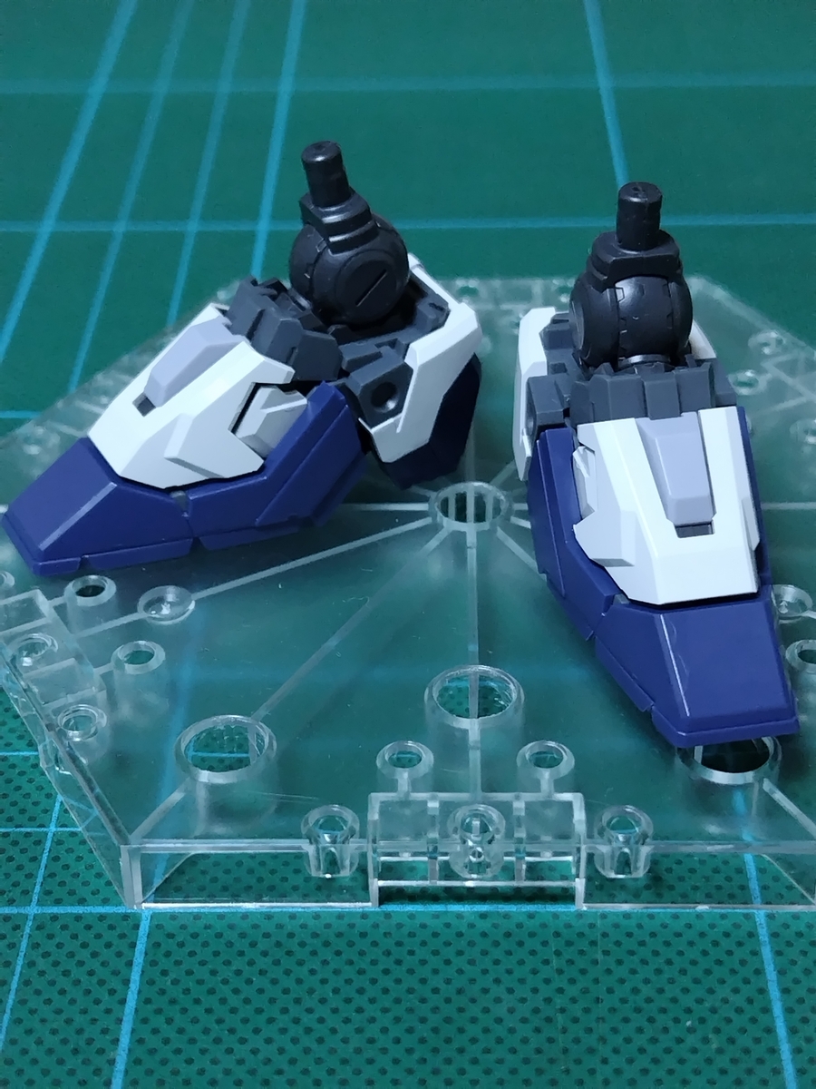 脚部スラスターノズルです。ノズル内部のレッドのパーツは、バンダイのパーツセパレーターで押し込むと良さそうです。