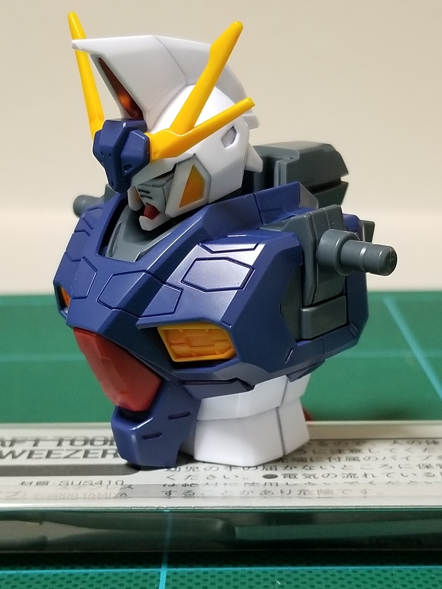 ツインアイのホイルシールは、つまようじを使ってパーツに密着させました。シールのツインアイの位置とパーツの凹凸がピッタリ合うってスゴいと思います。