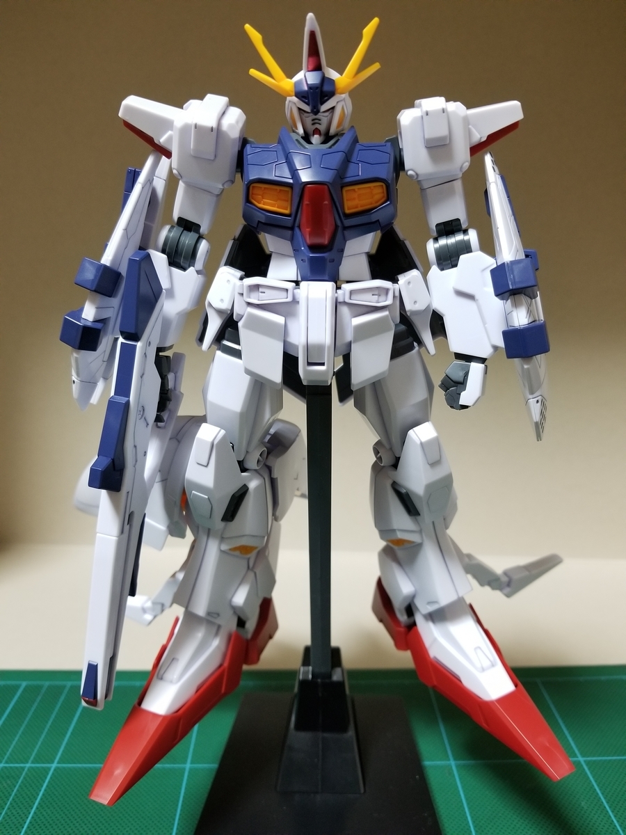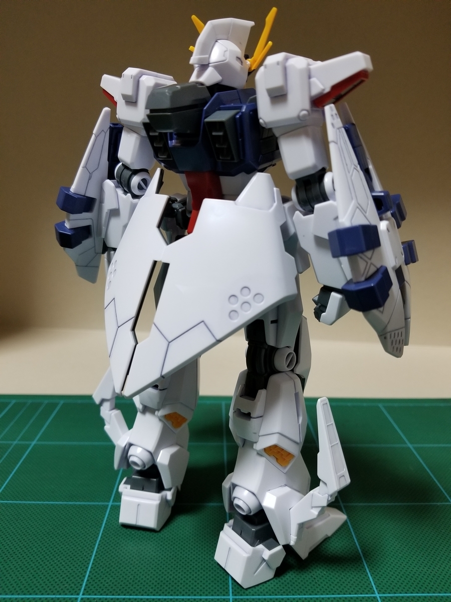 説明書にはビーム・ライフルを取り外すよう指示がありますが、とくに干渉する部分は無いので、持たせたままです。