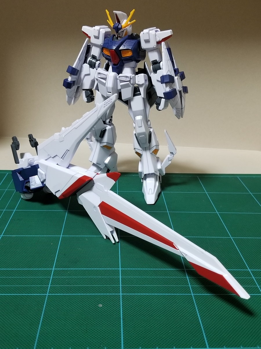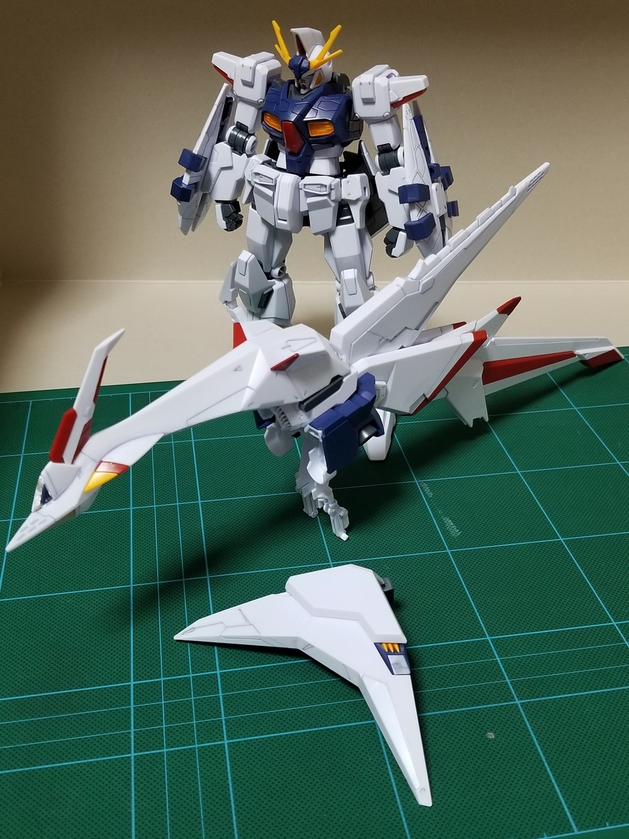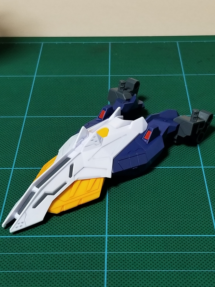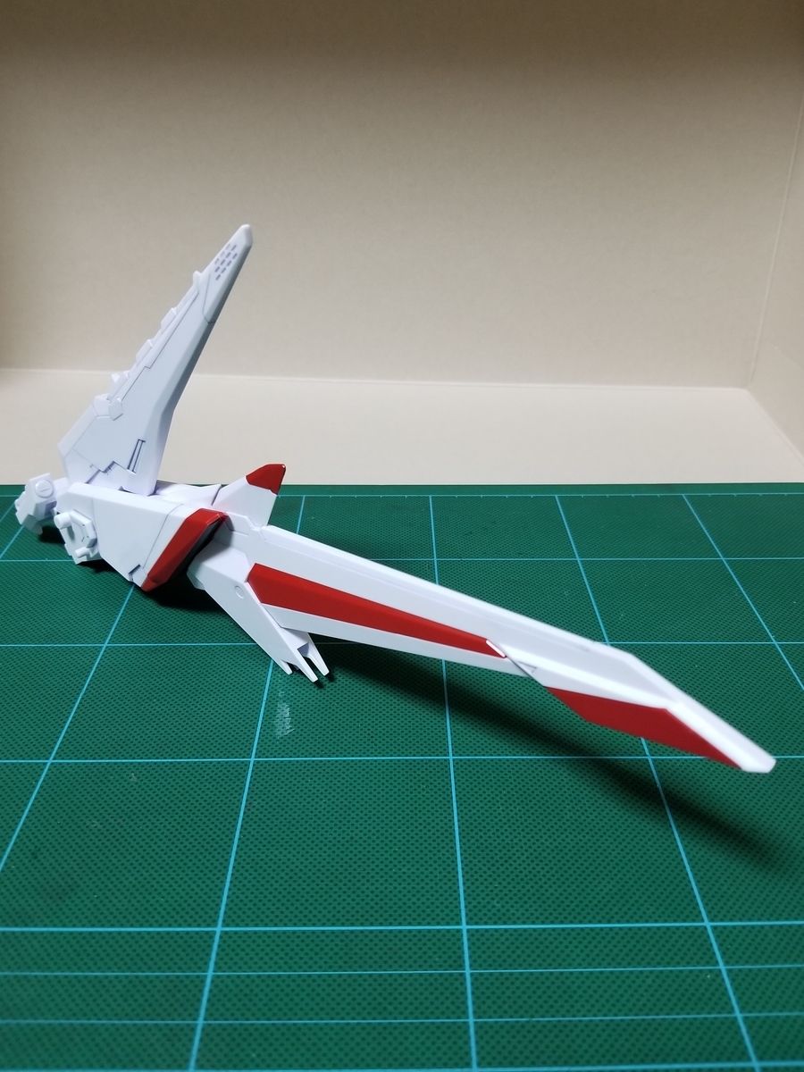 組立説明書は、この後ペーネロペーに合体⇒フライトフォームに変形⇒オデュッセウスガンダムとFFユニットに分離となっていますが、まずはFFユニットをディスプレイします。