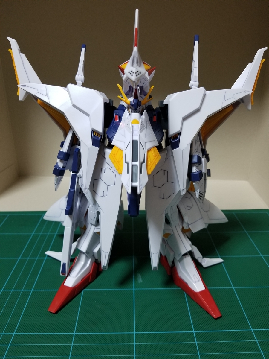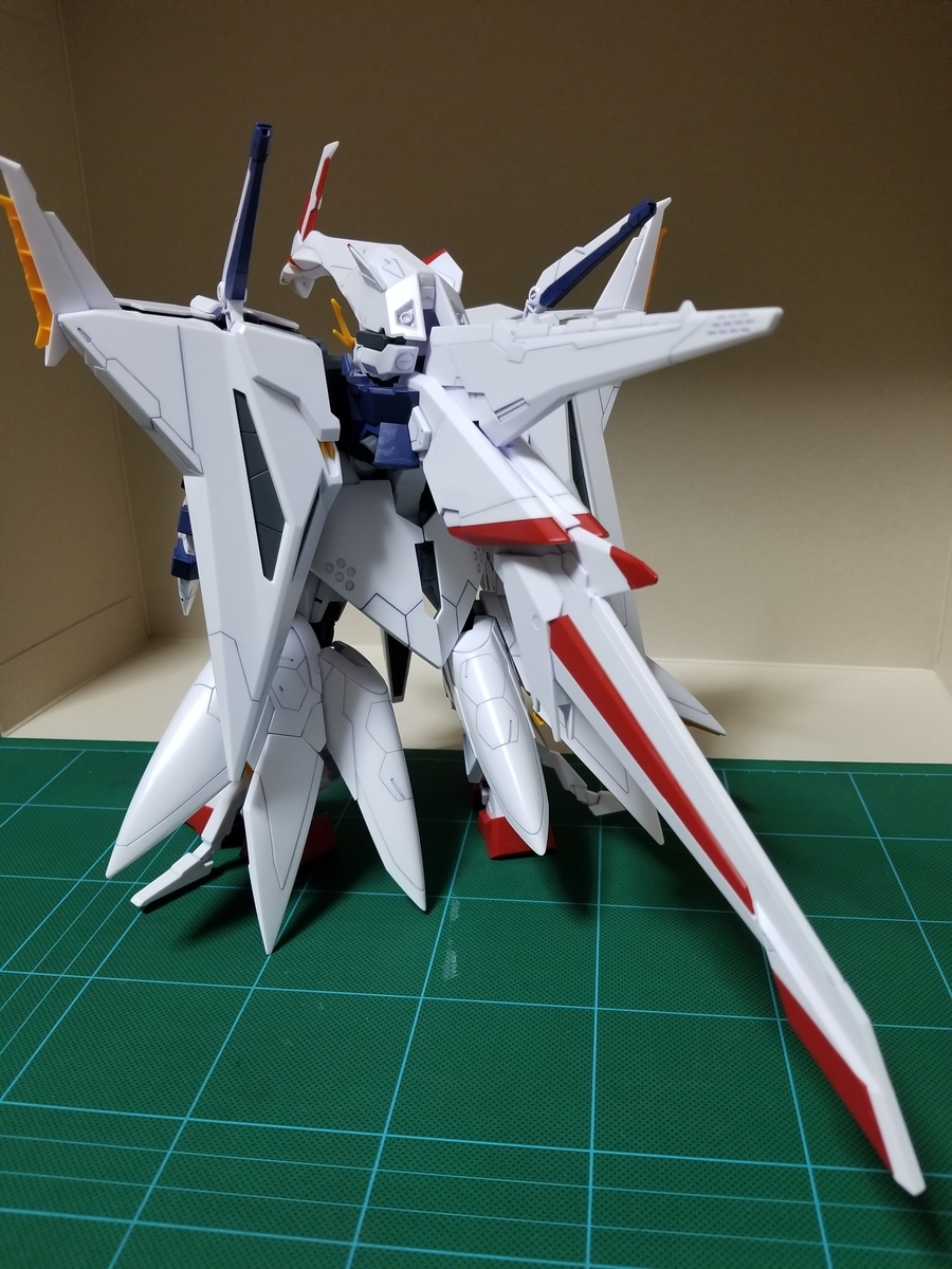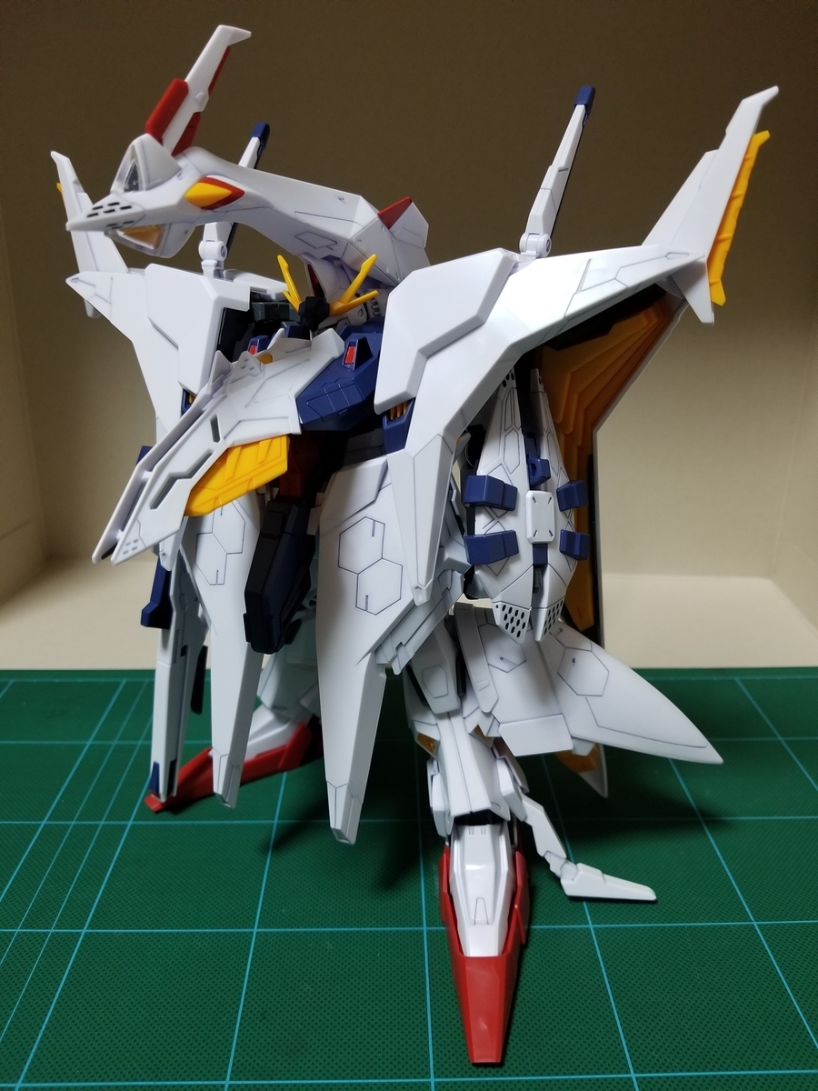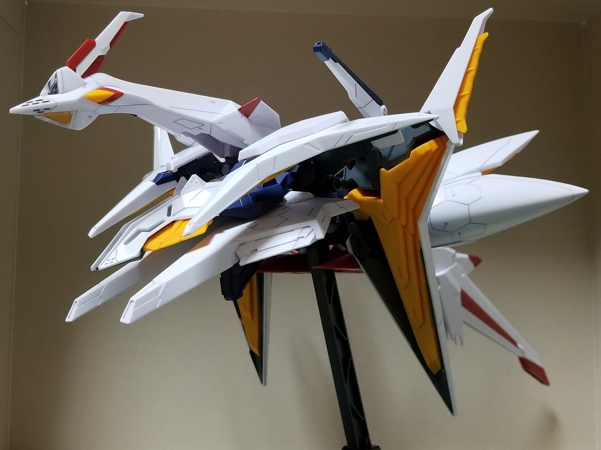 組立説明書は、この後ペーネロペーに合体⇒フライトフォームに変形⇒オデュッセウスガンダムとFFユニットに分離となっていますが、まずはFFユニットをディスプレイします。