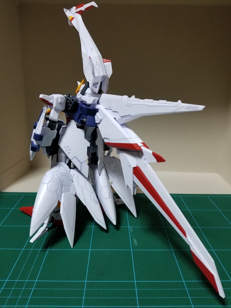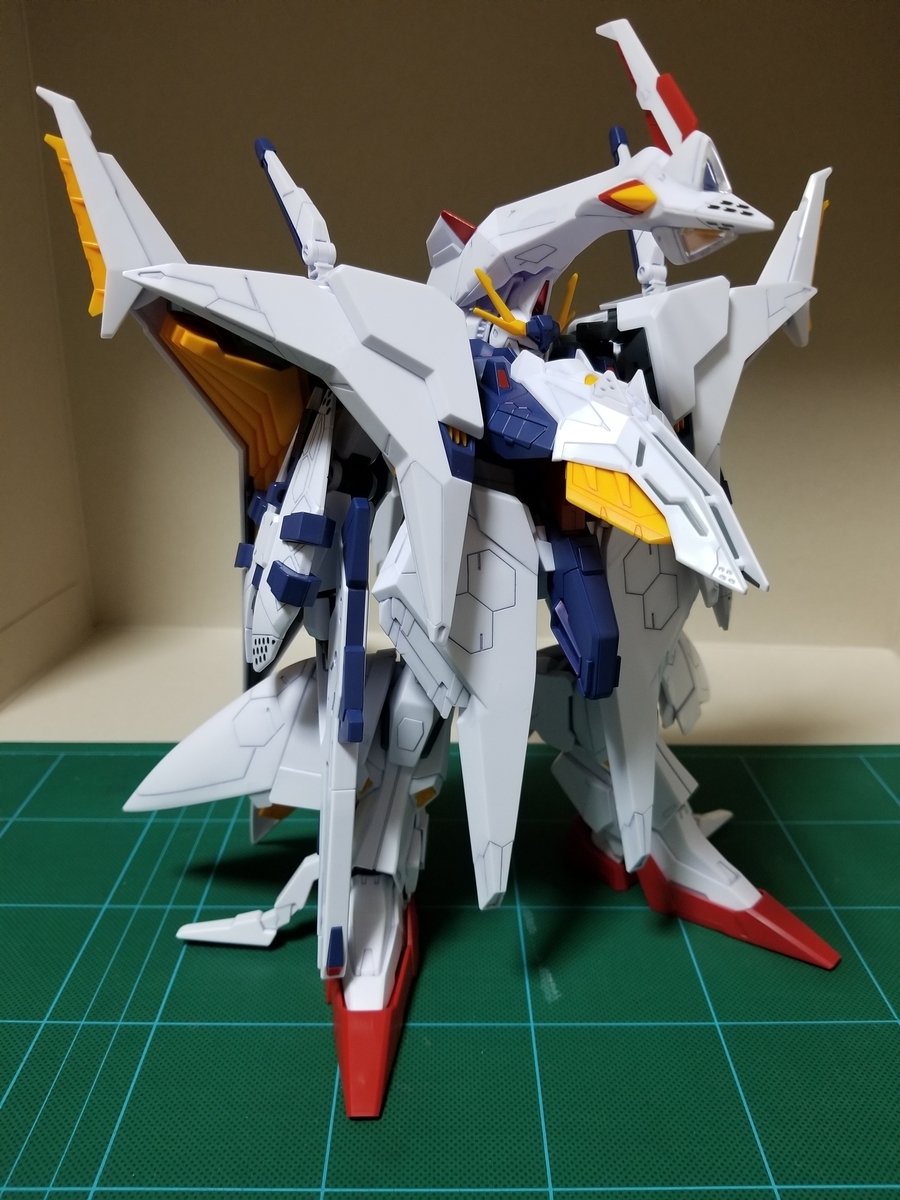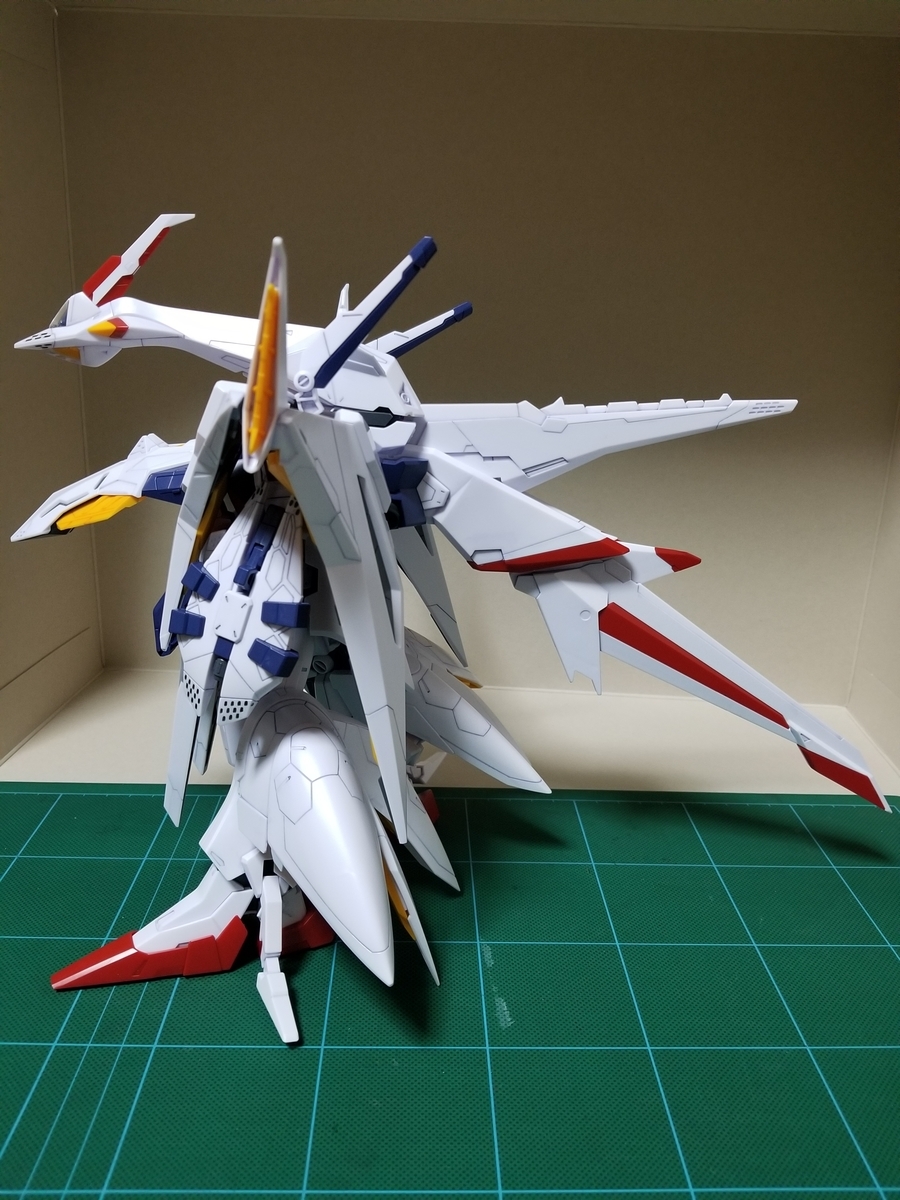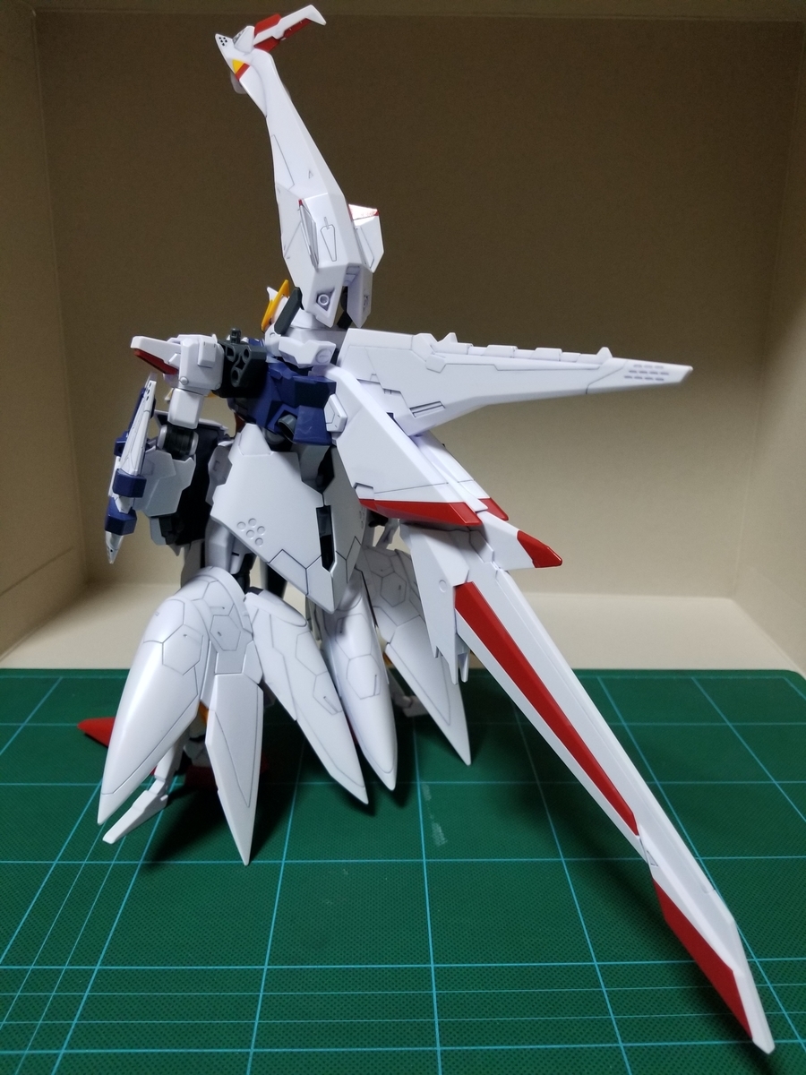 組立説明書は、この後ペーネロペーに合体⇒フライトフォームに変形⇒オデュッセウスガンダムとFFユニットに分離となっていますが、まずはFFユニットをディスプレイします。
