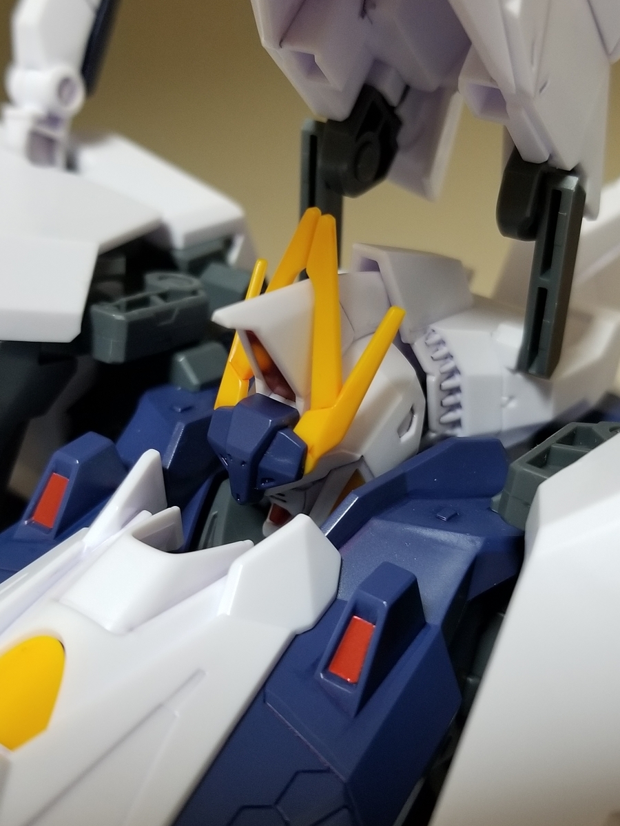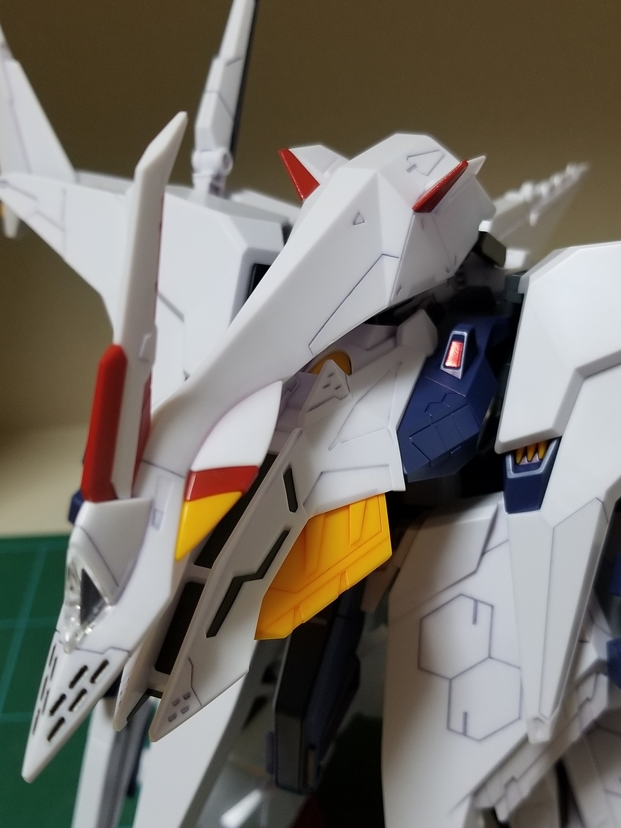 肩部の赤いパーツのスラスター(?)部分のグレーは、シールです。