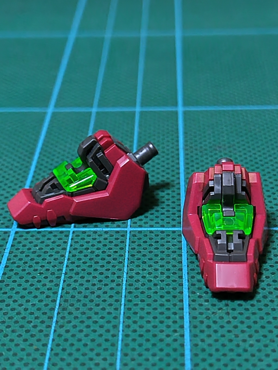 足部✕2組立途中です。グリーンのクリアパーツが良く光を拾います。