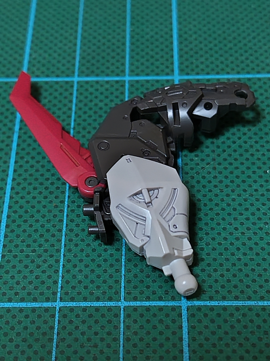 右腕組立完了です。ツメはフレームと外装の2パーツ構成です。