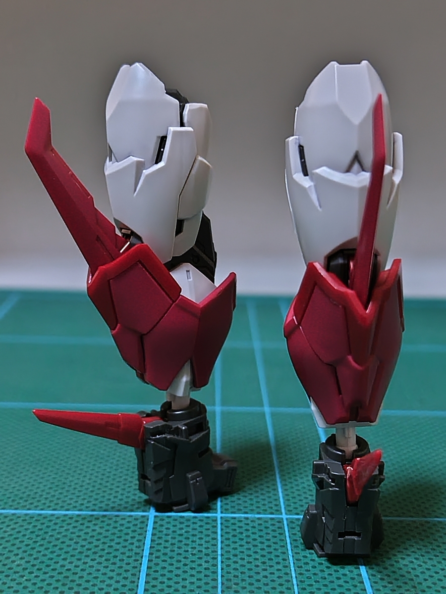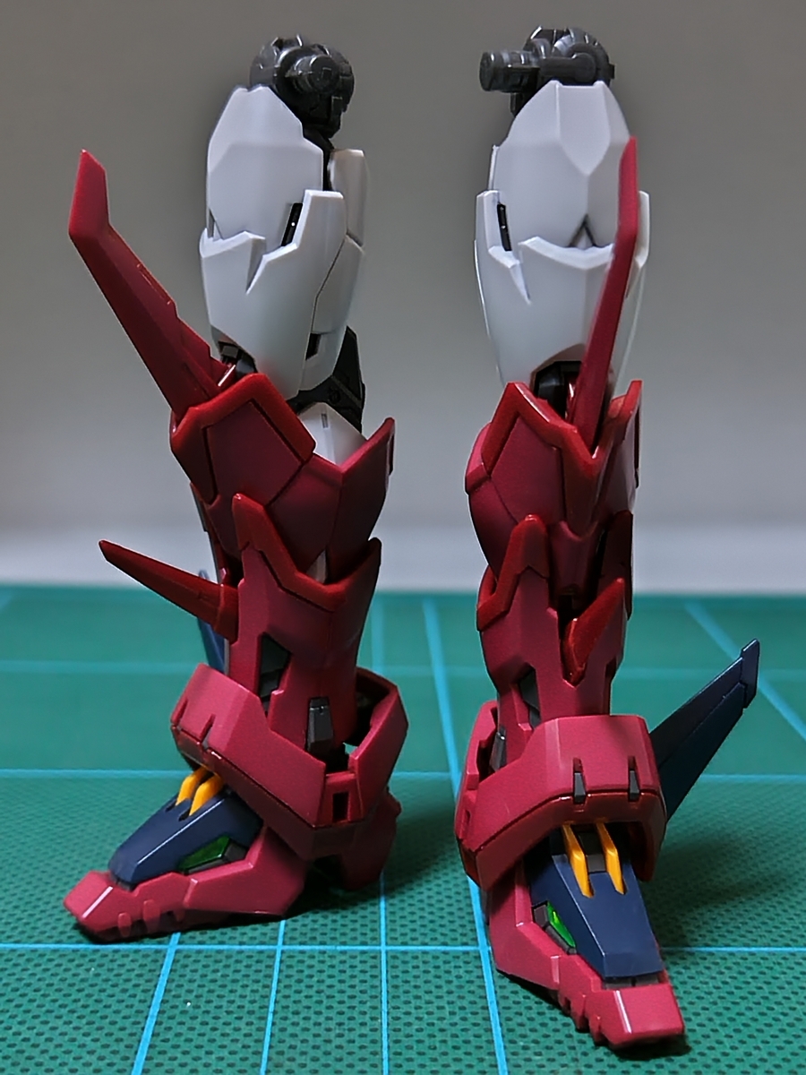 脚部✕2組立途中です。ガンダム・タイプらしからぬパーツ構成で、グラマラスなデザインです。