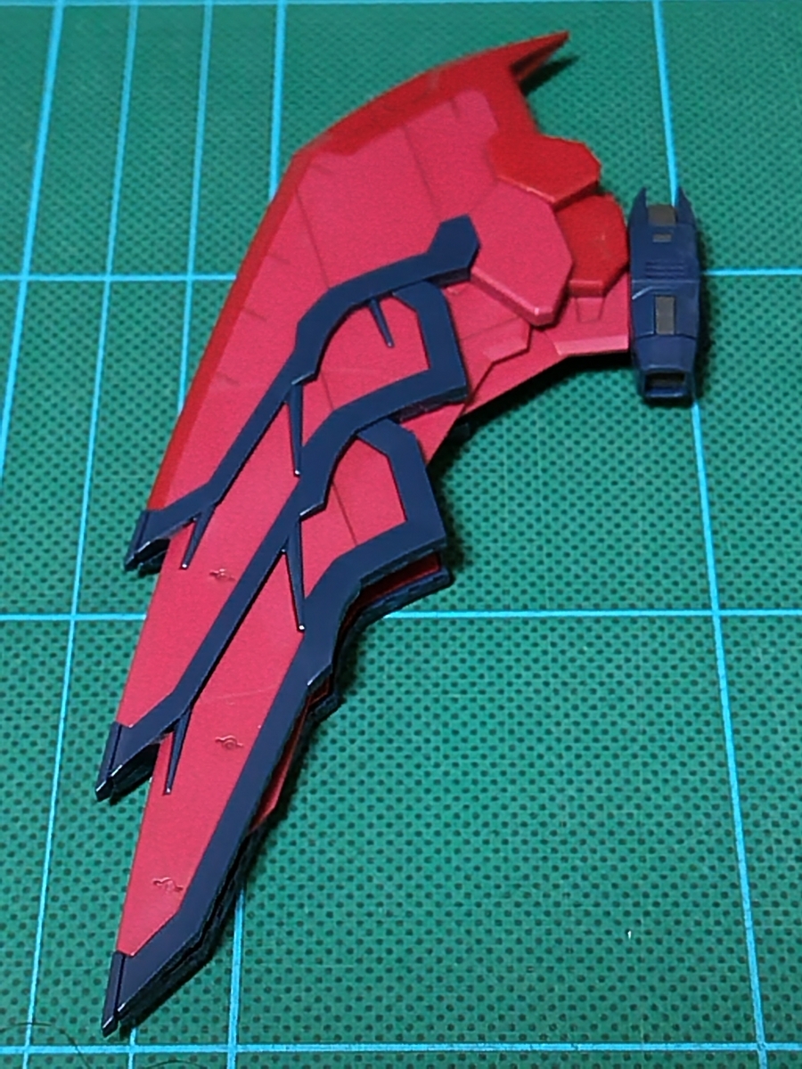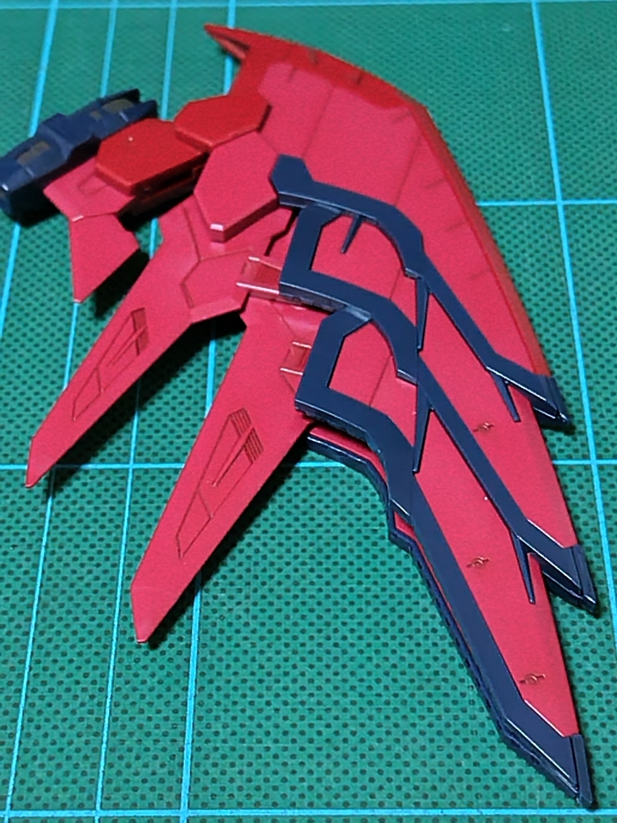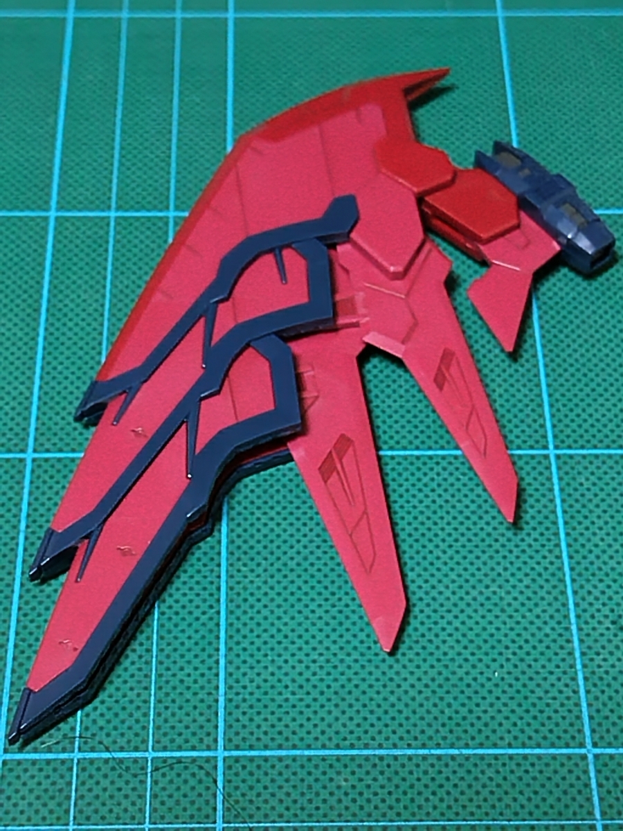 バックパック組立途中です。ウイング✕2です。レッドのパーツとダークブルーのパーツが、それぞれ1パーツで成型されています。