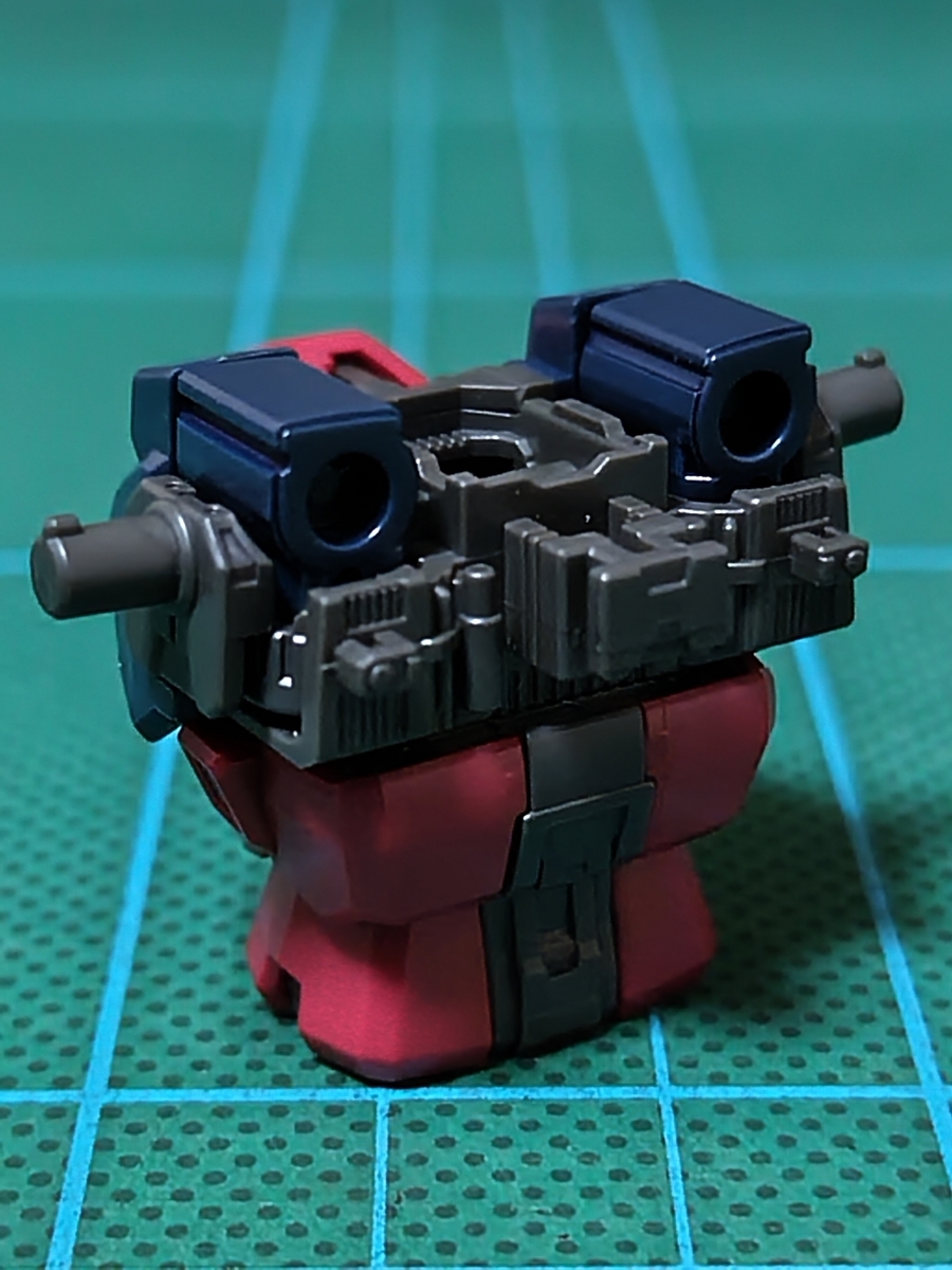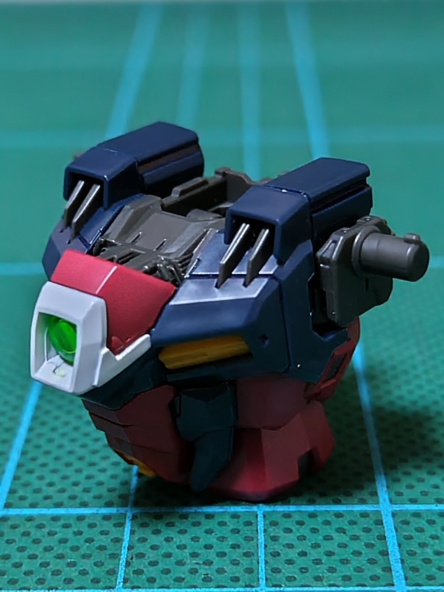 頭部組立完了です。ツインアイがパーツ分割で色分けされているので、リアリスティックデカールを貼っていません。