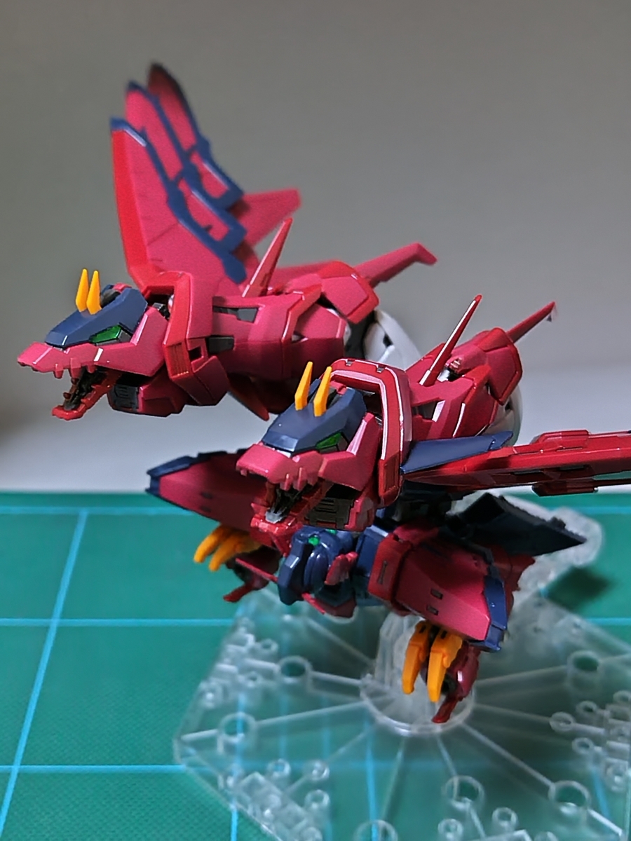 今度は忘れずにシッポ(エピオンシールドとヒートロッド)を取り付け、ヒザ下(双頭の竜の首)を伸ばしています。